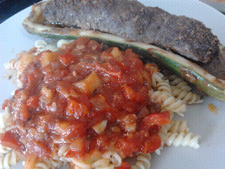 Enige tijd geleden twitterde ik al dat we dit aten, bij dezen nu ook het recept! De combinatie van de Noord-Afrikaanse kruiding van het gehakt met de provencaalse, ratatouille-achtige saus maakt het een heerlijk, multi-culti panmediterraan gerecht!